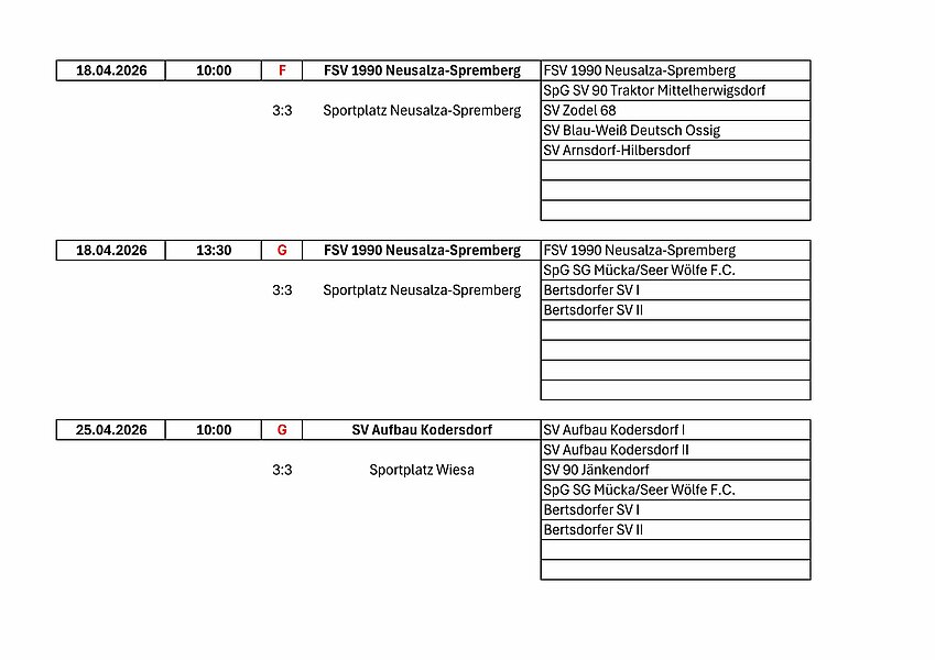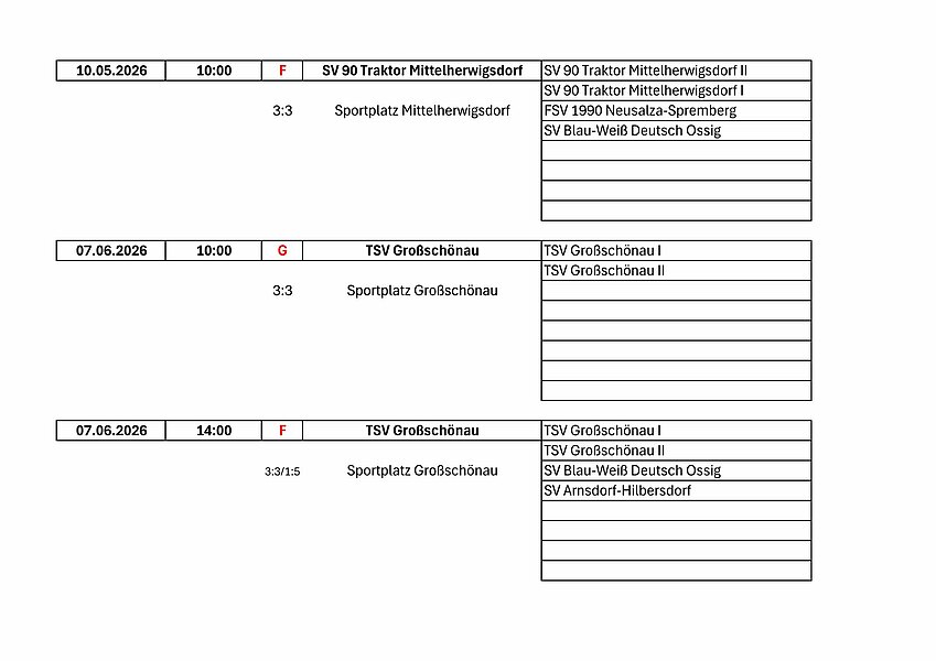 Leider gingen im letzten Spieljahr zwei Versuche voll daneben, so bei der SpG SV 90 Traktor Mittelherwigsdorf mit 1:5 wie auch beim NFV Gelb-Weiß Görlitz 09 mit Turnieren für spielstarke und schwächere Spieler jeweils bei den F-Junioren durchführen zu wollen, die beide wegen ohne bzw. wegen zu wenig Anmeldungen ausfallen mussten!