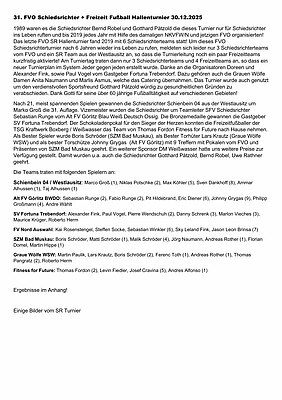 Ein kurzer Bericht zum 31. FVO-Schiedsrichter- & Freizeit-Fußbal-Hallenturnier vom 30. Dezember 2025 von Frank Konietzky...