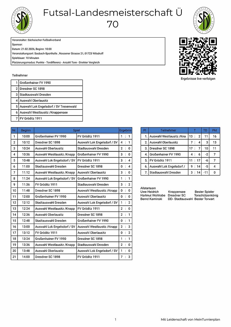 Unter der Leitung von Cheftrainer Thomas Brußig und Manfred Weiner war es dieses Jahr die mannschaftliche Geschlossenheit, die unsere Auswahl Oberlausitz Ü70 zum Vizelandesmeistertitel führte.
