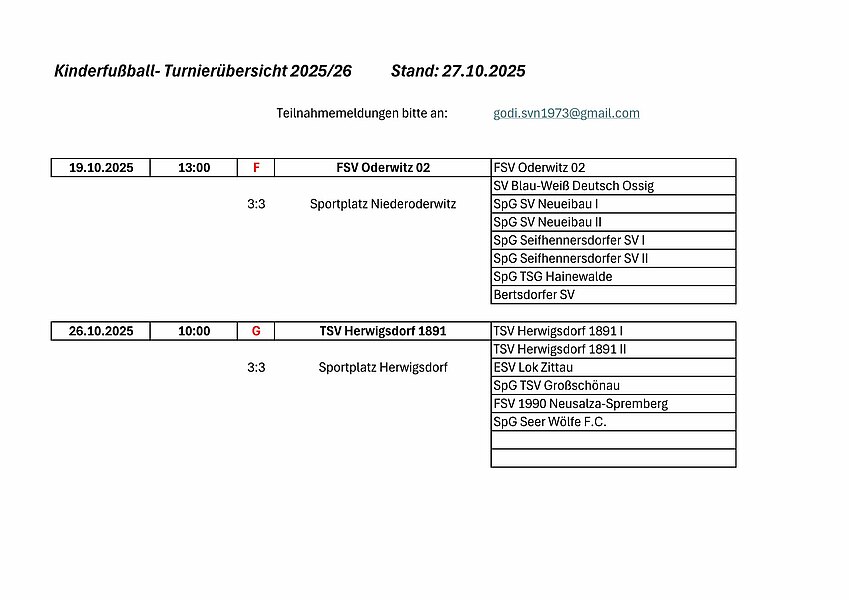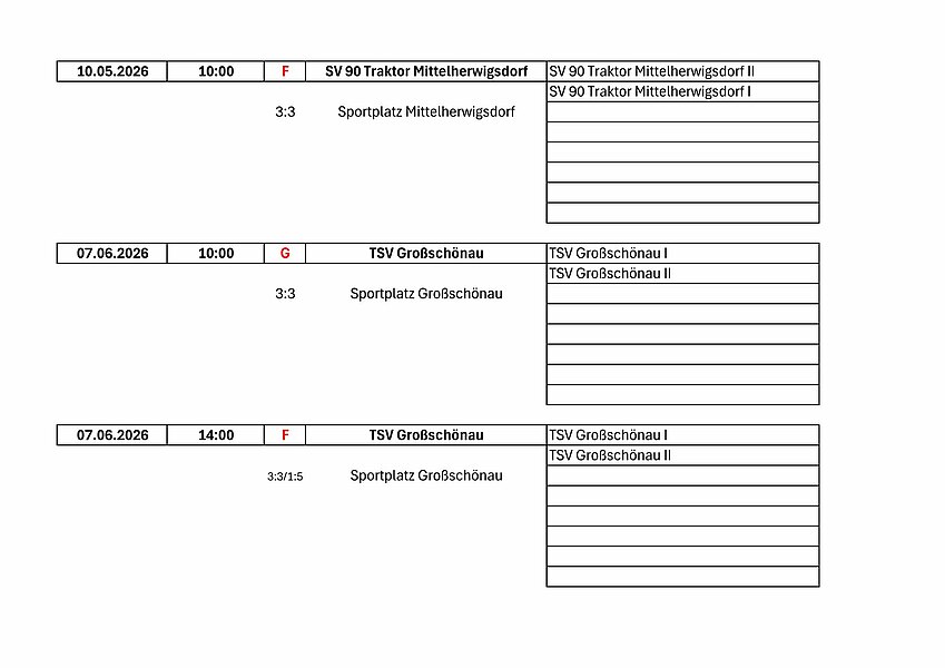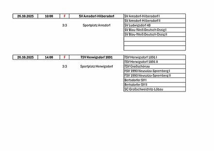 Leider gingen im letzten Spieljahr zwei Versuche voll daneben, so bei der SpG SV 90 Traktor Mittelherwigsdorf mit 1:5 wie auch beim NFV Gelb-Weiß Görlitz 09 mit Turnieren für spielstarke und schwächere Spieler jeweils bei den F-Junioren durchführen zu wollen, die beide wegen ohne bzw. wegen zu wenig Anmeldungen ausfallen mussten!